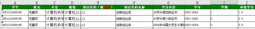 1、附件1《成人视频 创新实践学分统计表》创新创业类申报模板
