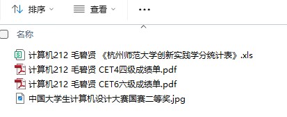 1、申报:每位同学建立一个以“班级+学号+姓名”命名的文件夹,将填写好的《成人视频 创新实践学分统计表》(附件1)放入其中,表中的每条记录都应附相应的佐证材料(如图所示)。除需要用创新创业类二类学分充抵专业课或通识课学分的同学外,每位同学此小类满足2分即可,无需多报。