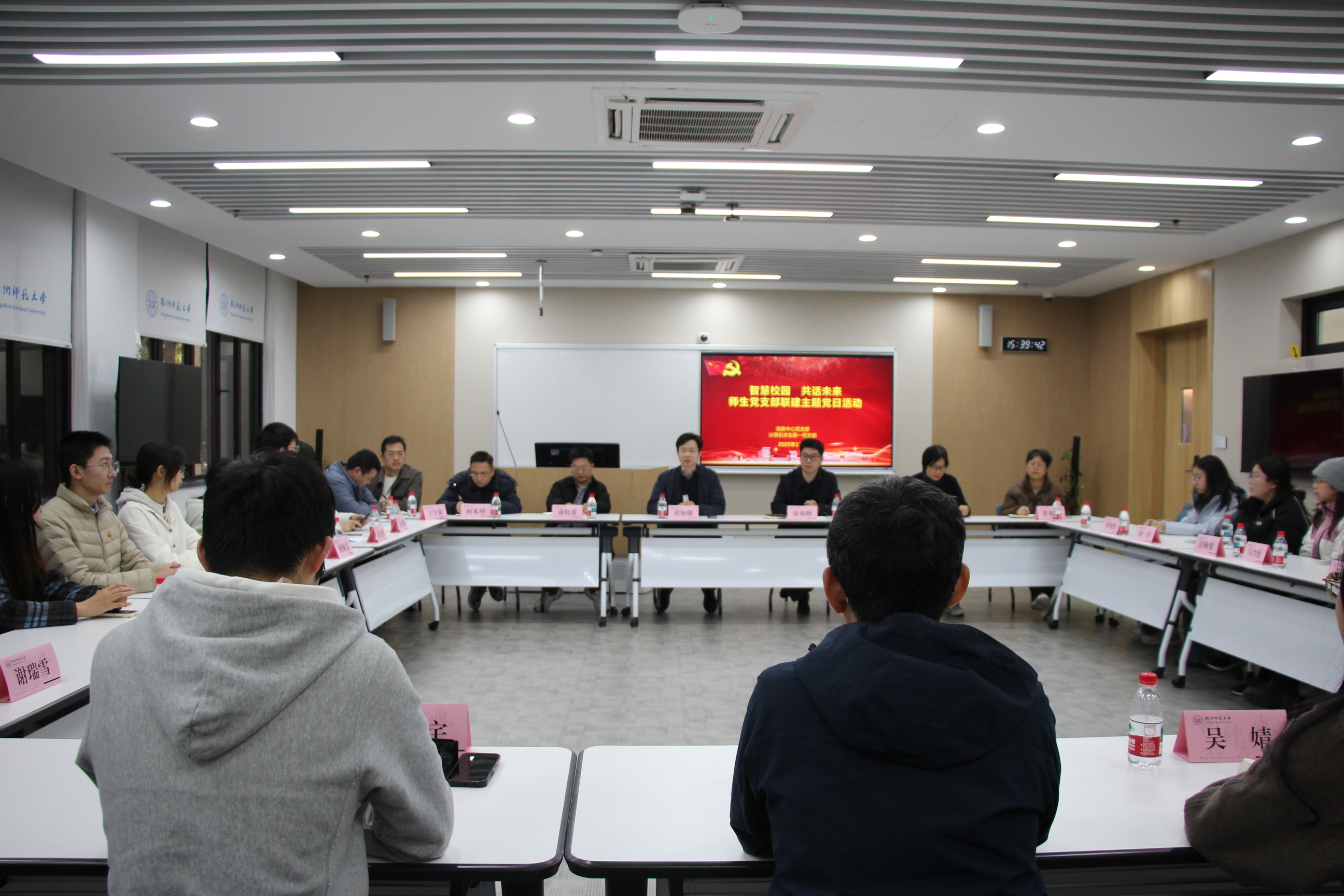 为深入贯彻落实学校数字化改革战略部署,推动党建与业务深度融合,2025年11月20日下午,信息中心党支部与信息科学与工程成人视频 计算机学生第一、第二党支部在恕园12号楼107教室联合开展“智慧校园 共话未来”主题党日活动。本次活动以“学生党员走进智慧校园”为主线,通过实地体验、主题分享与互动交流,搭建起师生之间关于智慧校园建设的沟通桥梁。