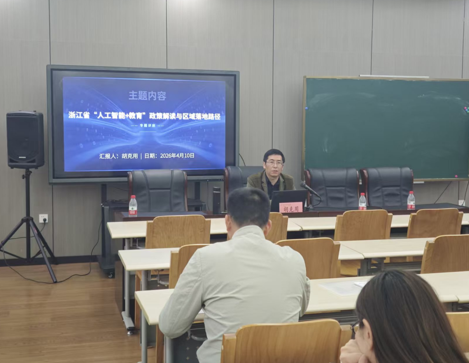 2026年4月10日,应杭州高级中学领导邀请,成人视频 胡克用老师为该校教师及教育管理者作了题为《浙江省“人工智能+教育”政策解读与区域落地路径》的专题讲座。